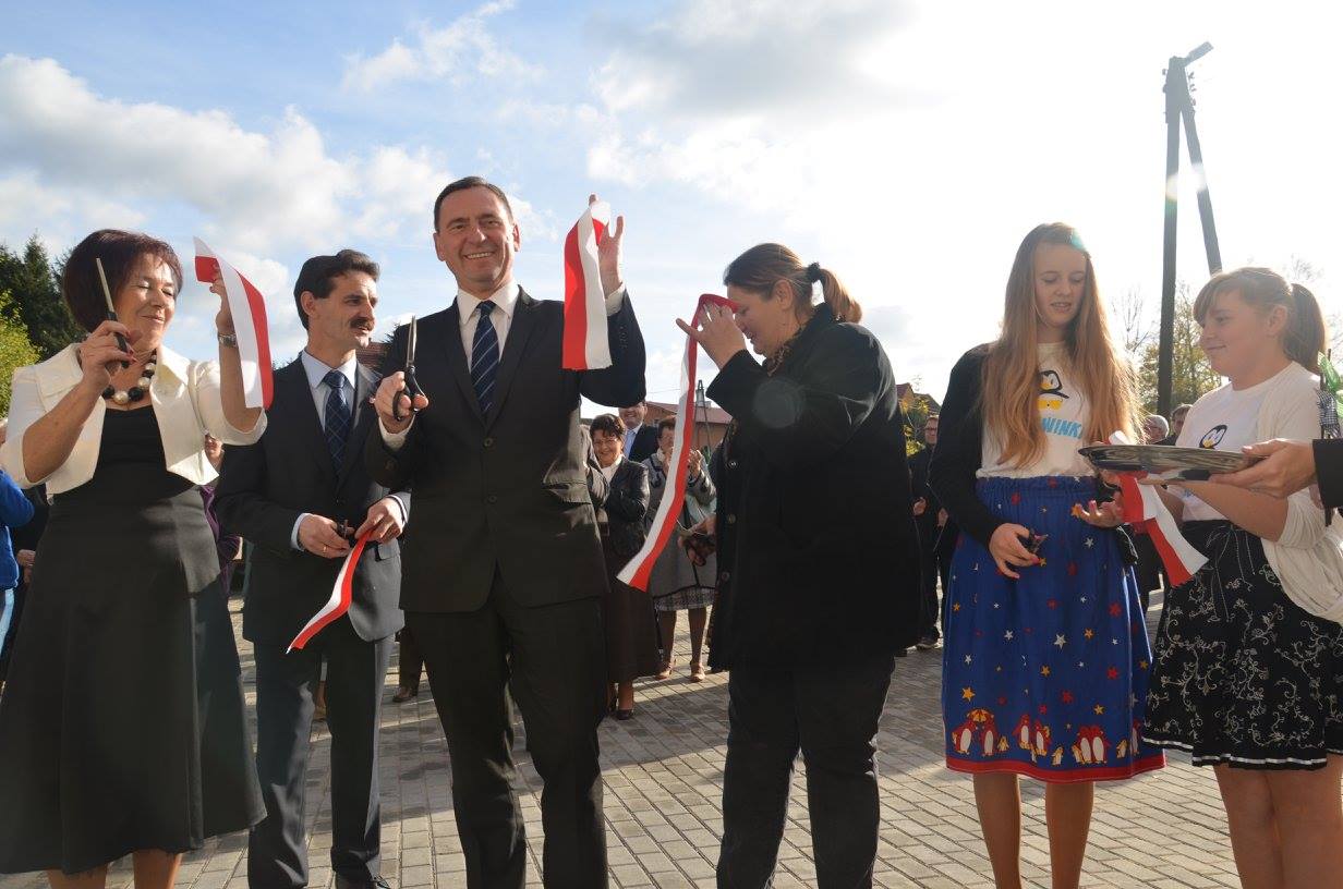 Wicemarszałek województwa Andrzej Jakubowski dokonał uroczystego przecięcia symbolicznej wstęgi wraz z wójtem Sławna Ryszardem Stachowiakiem.