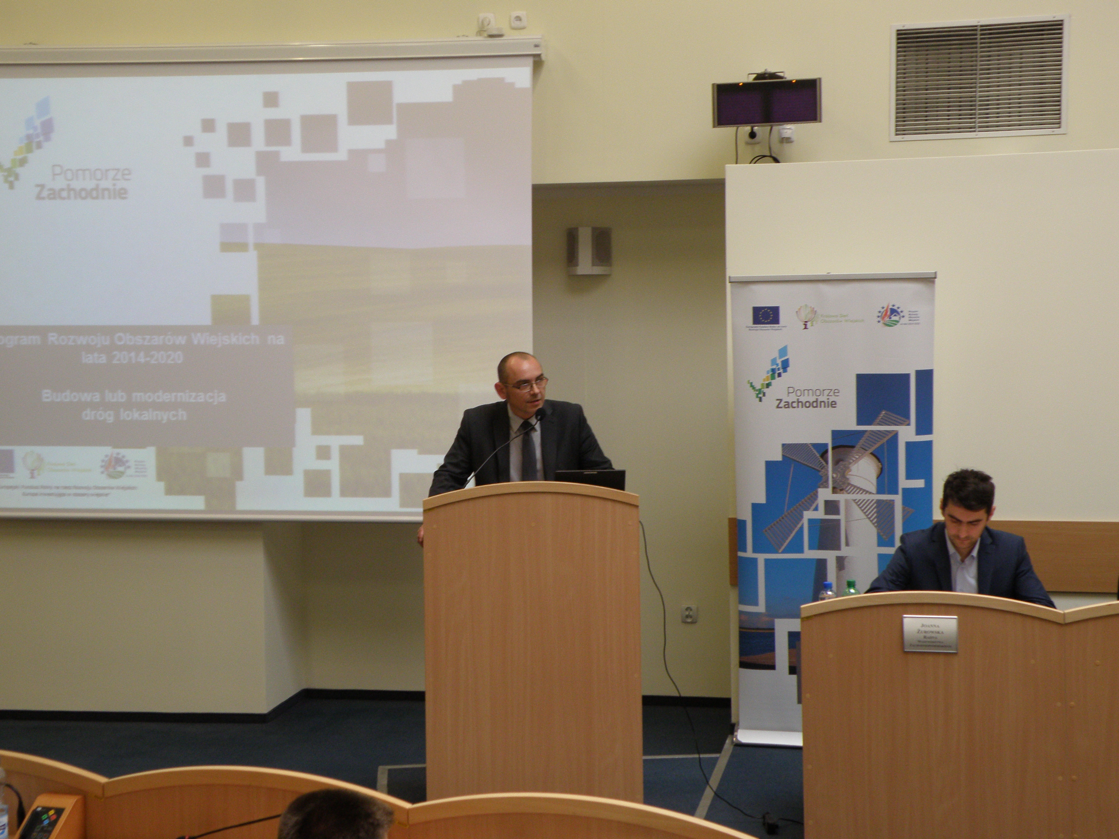 W dniu 8 października 2015 r. w sali sesyjnej Sejmiku Województwa Zachodniopomorskiego odbyło się szkolenie zorganizowane przez Wydział Programów Rozwoju Obszarów Wiejskich w ramach działania „Podstawowe usługi i odnowa wsi na obszarach wiejskich” na operacje typu „Budowa lub modernizacja dróg lokalnych” w ramach poddziałania „Wsparcie inwestycji związanych z tworzeniem, ulepszaniem lub rozbudową wszystkich rodzajów małej infrastruktury, w tym inwestycji w energię odnawialną i w oszczędzanie energii” objętego Programem Rozwoju Obszarów Wiejskich na lata 2014–2020.