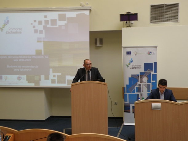 W dniu 8 października 2015 r. w sali sesyjnej Sejmiku Województwa Zachodniopomorskiego odbyło się szkolenie zorganizowane przez Wydział Programów Rozwoju Obszarów Wiejskich w ramach działania „Podstawowe usługi i odnowa wsi na obszarach wiejskich” na operacje typu „Budowa lub modernizacja dróg lokalnych” w ramach poddziałania „Wsparcie inwestycji związanych z tworzeniem, ulepszaniem lub rozbudową wszystkich rodzajów małej infrastruktury, w tym inwestycji w energię odnawialną i w oszczędzanie energii” objętego Programem Rozwoju Obszarów Wiejskich na lata 2014–2020.